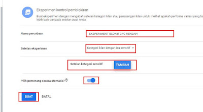 Langkah Ketiga : Pilih Buat Eksperimet / Kontrol Pemblokiran.